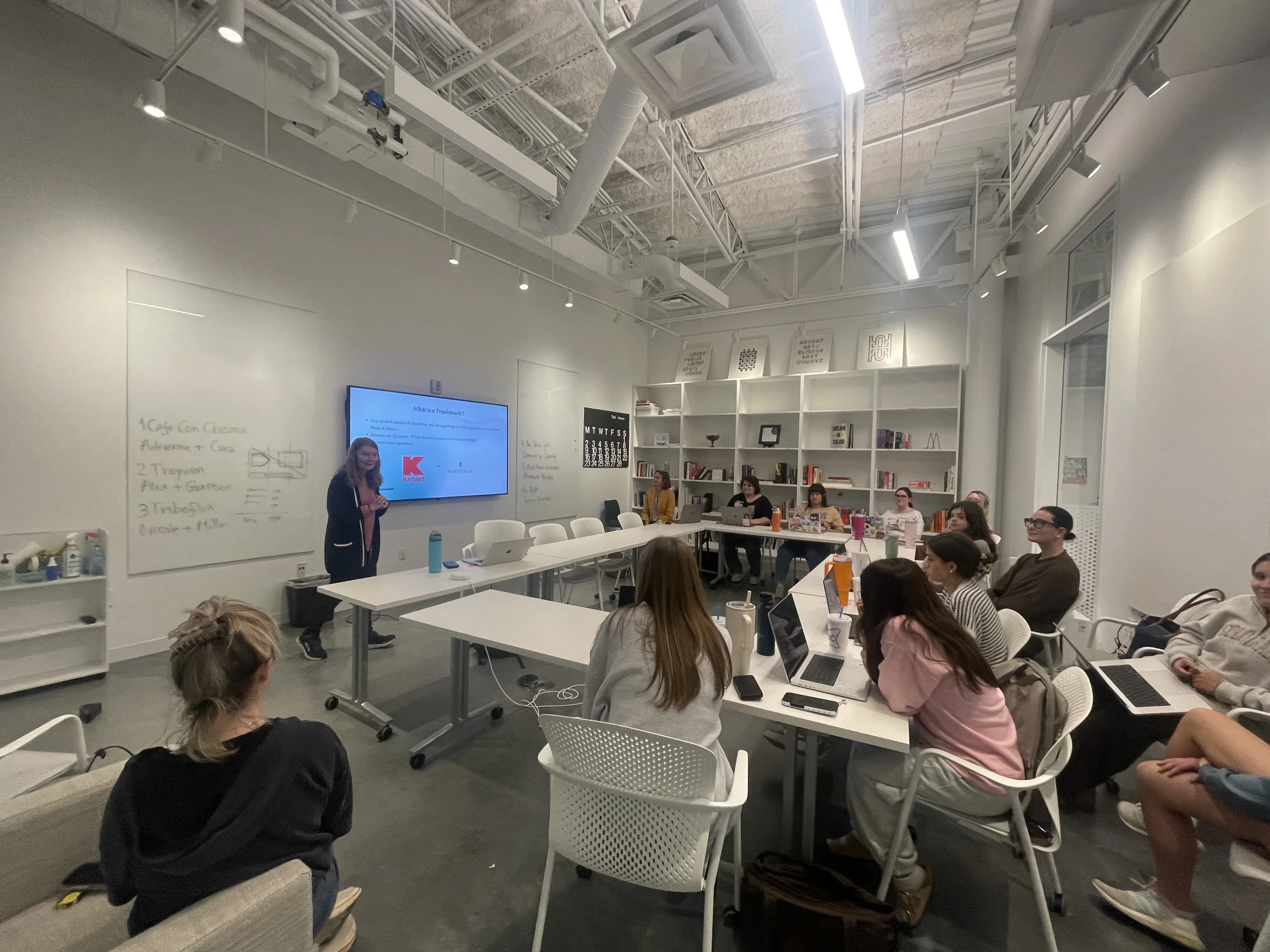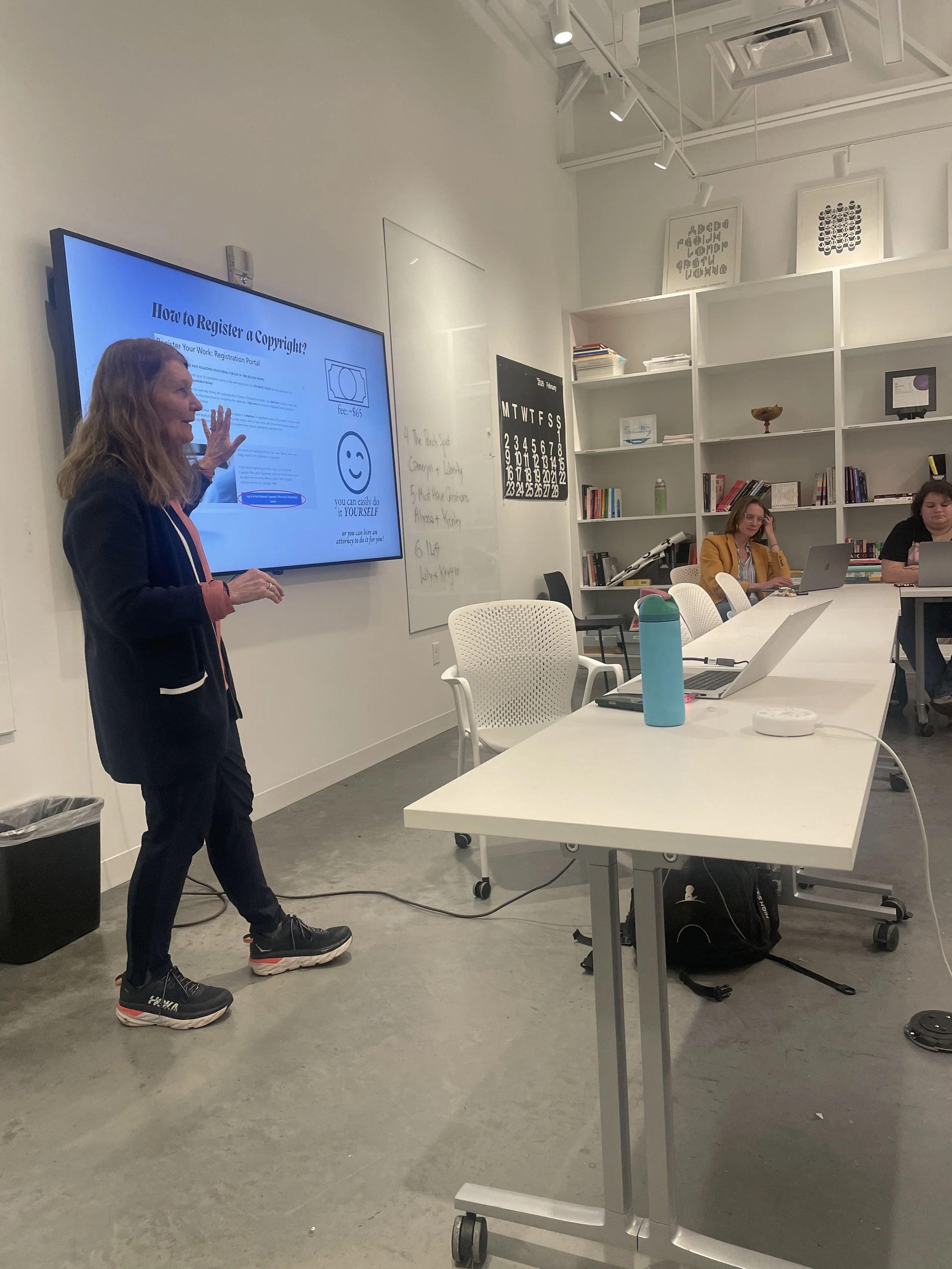 Here she is lecturing to the Art Design class at the University of Arkansas.